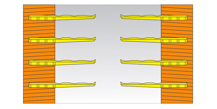 3、要求平衡.豎直,同側支架水平間距80cm,雙側支架錯開安裝,保證支架均衡承載。